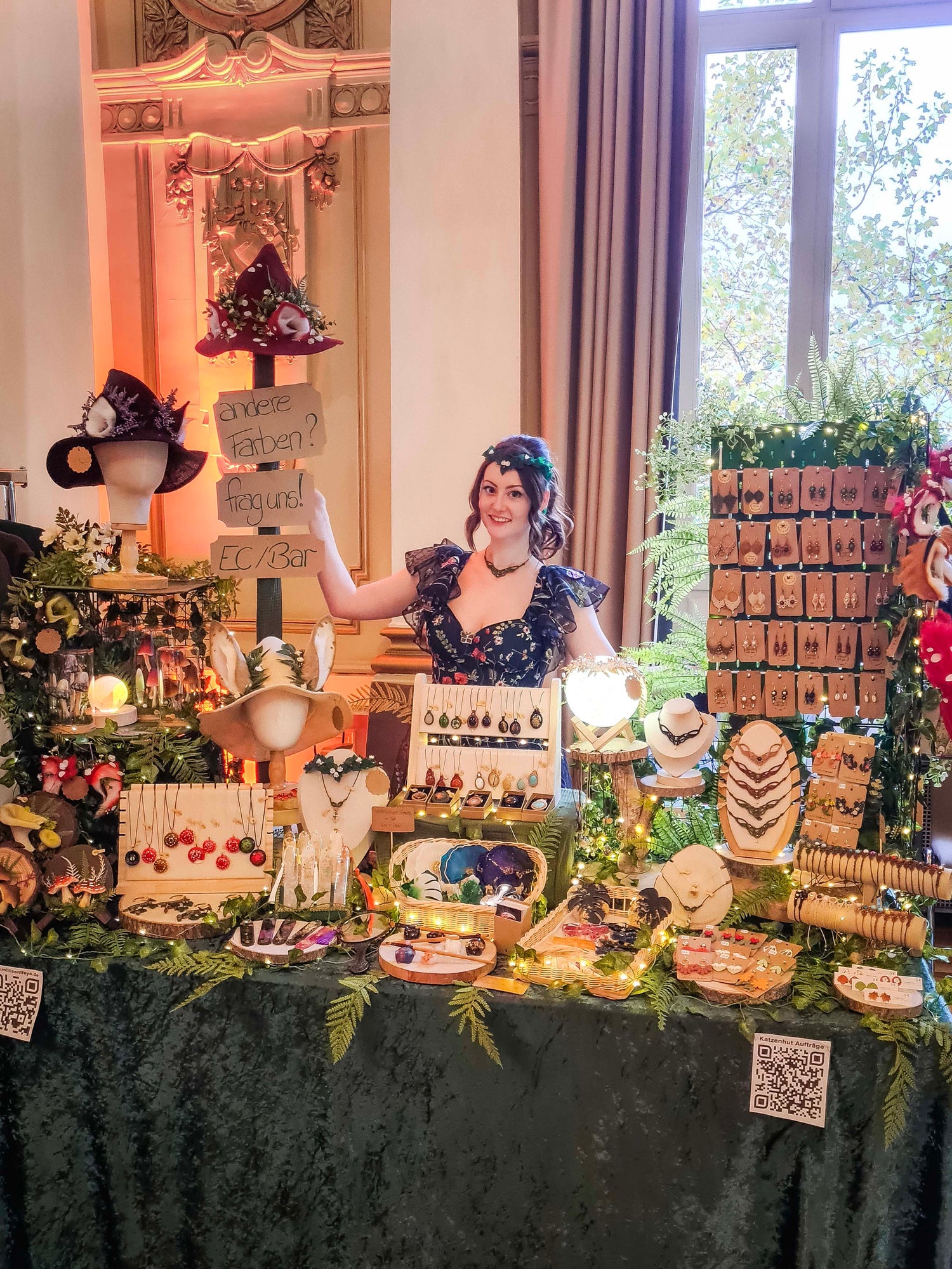 Erlebe meine handgefertigten Hüte, magischen Schmuck, fantasievolle Accessoires und kunstvolle Dekorationen live auf dem Chronicles of the Dancing Realm Ball in der Historischen Stadthalle in Wuppertal.