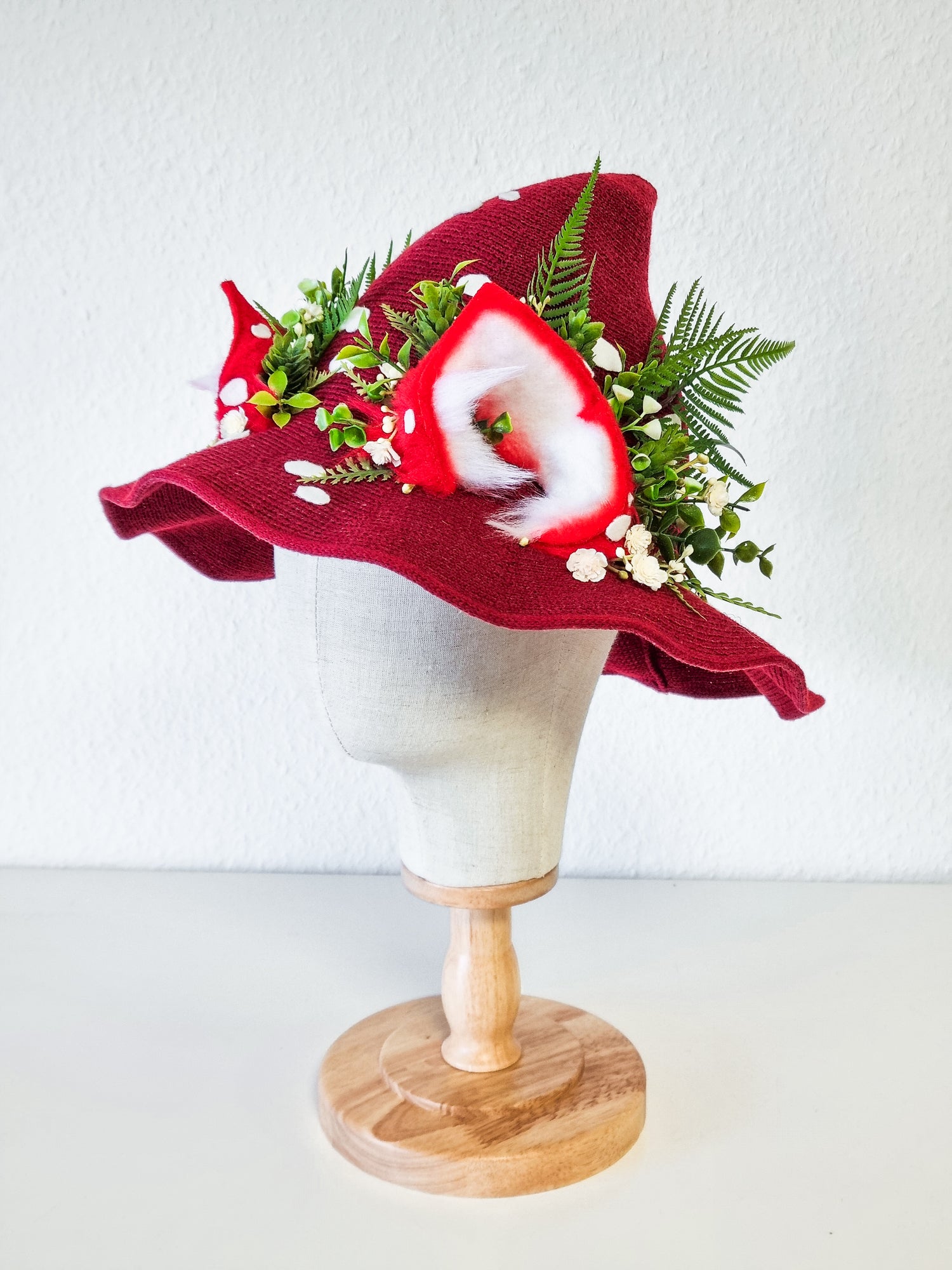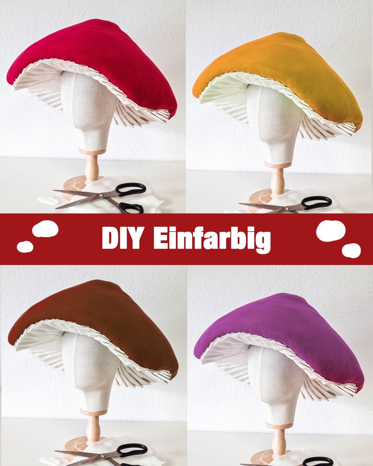 Lass dir einen Pilzhut anfertigen. Aus weichem Fleece und hautfreundlicher Baumwolle entstehen Hüte...