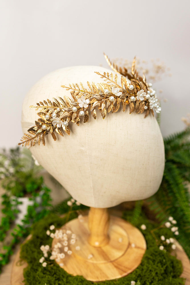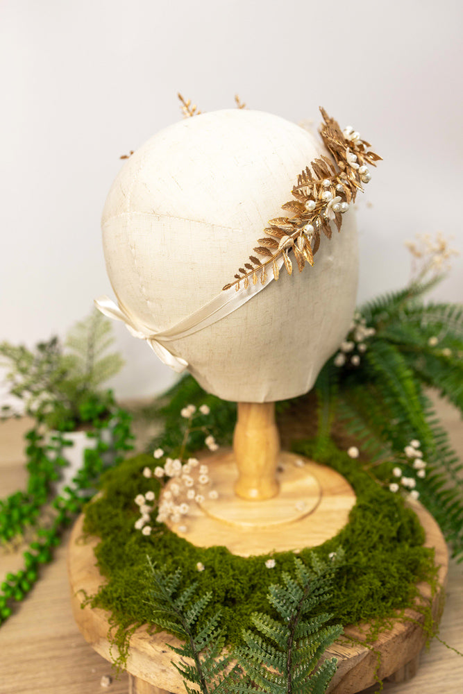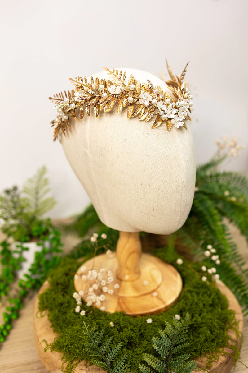 Dieses handgefertigte Diadem vereint goldene Eleganz mit göttlicher Anmut. ✨ Zwischen zarten weißen Blüten und feinen Perlen erstrahlen goldene Farne, die an die Schönheit und Würde antiker griechischer Göttinnen erinnern. Ein edles Accessoire für besondere Anlässe, Cosplay oder fantasievolle Fotoshootings – für alle, die den Hauch von Mythos und Glanz lieben. 🌿👑