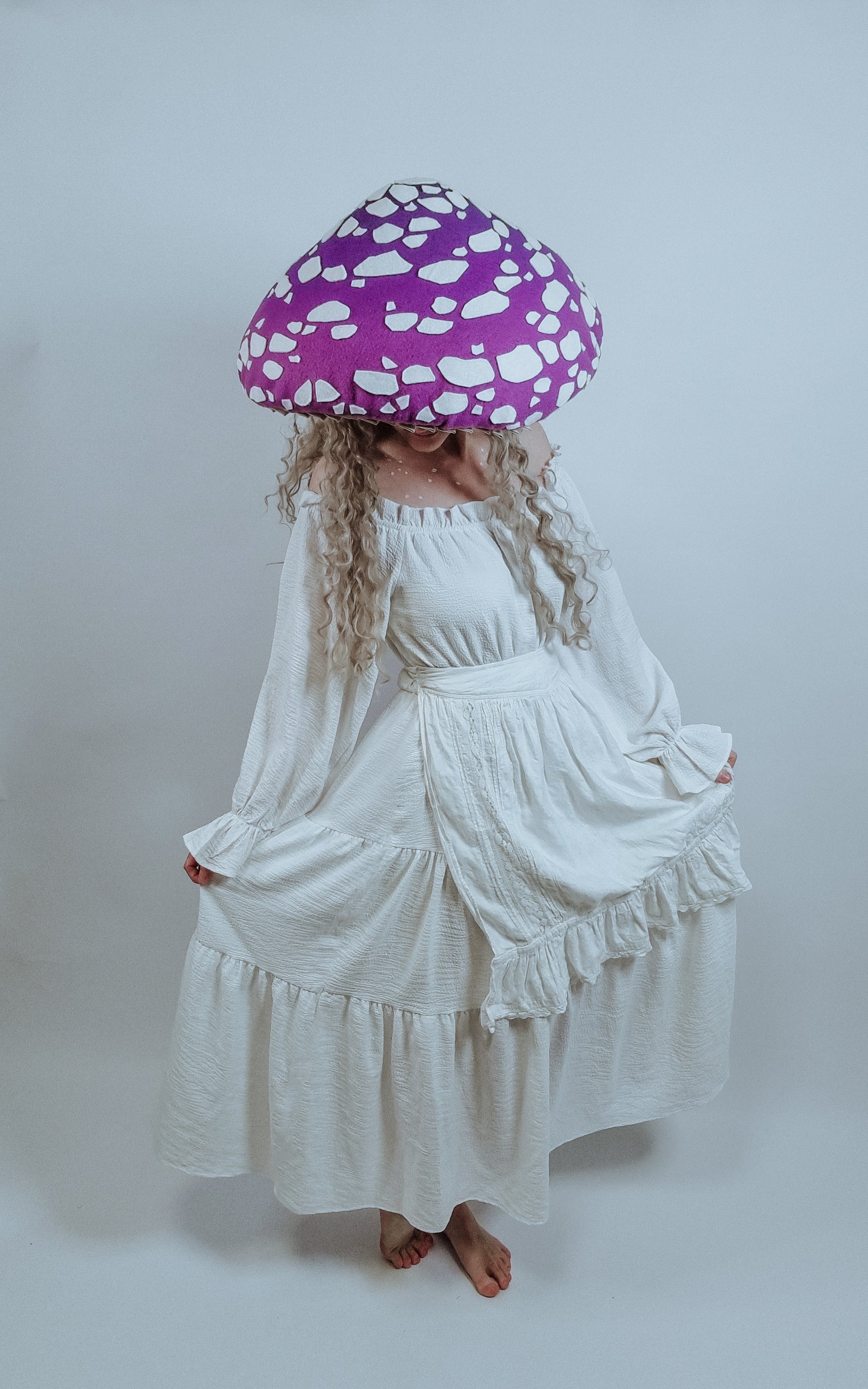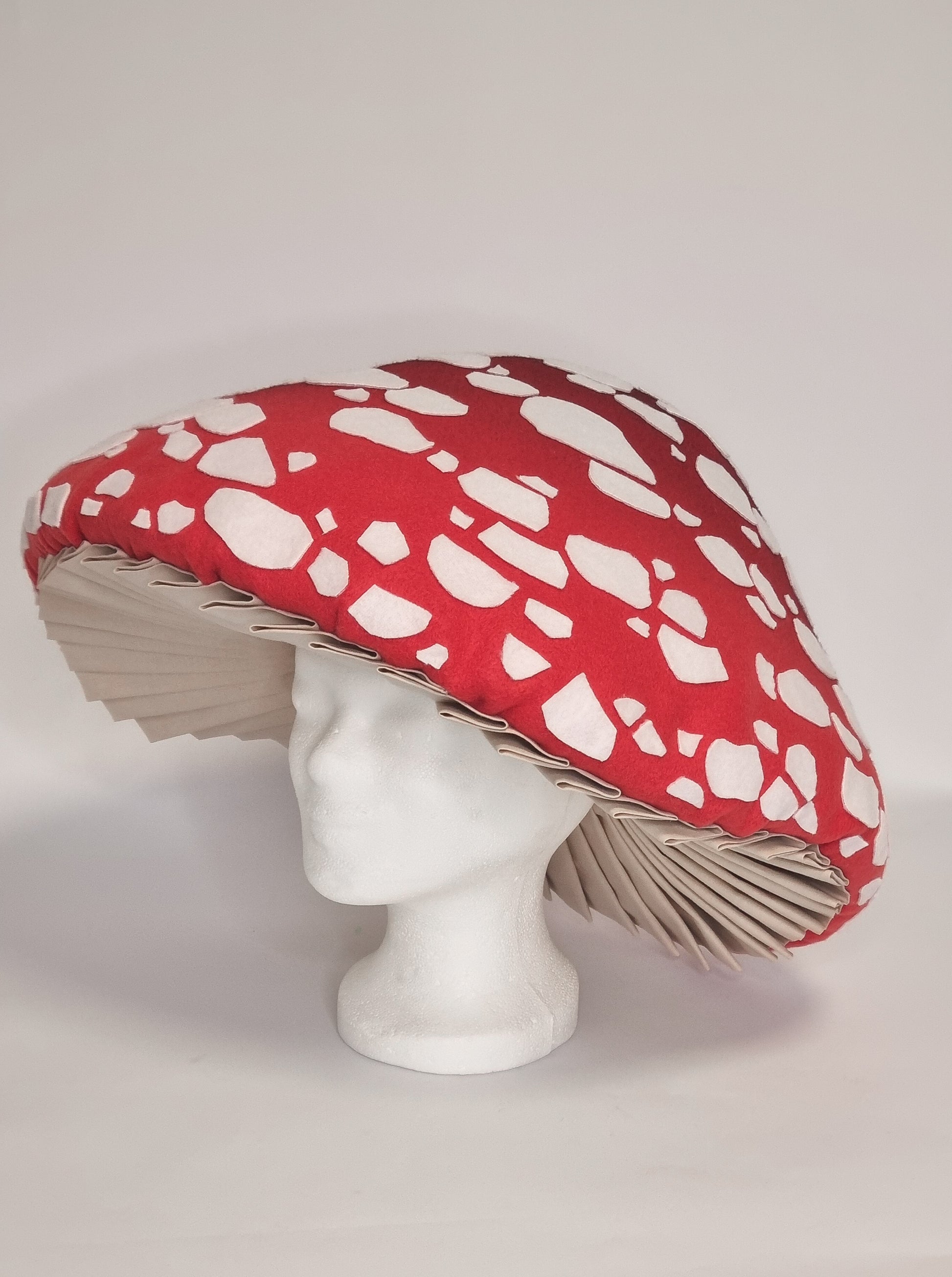 Dieser Pilzhut ist aus kuscheligem Fleece-Stoff und hautfreundlicher Baumwolle gefertigt und sorgt für ein angenehmes Tragegefühl. Form der Punkte musst du selbst ausschneiden und mit Heißkleber aufkleben. Der entsprechende weiße Fleece-Stoff wird mitgeliefert!