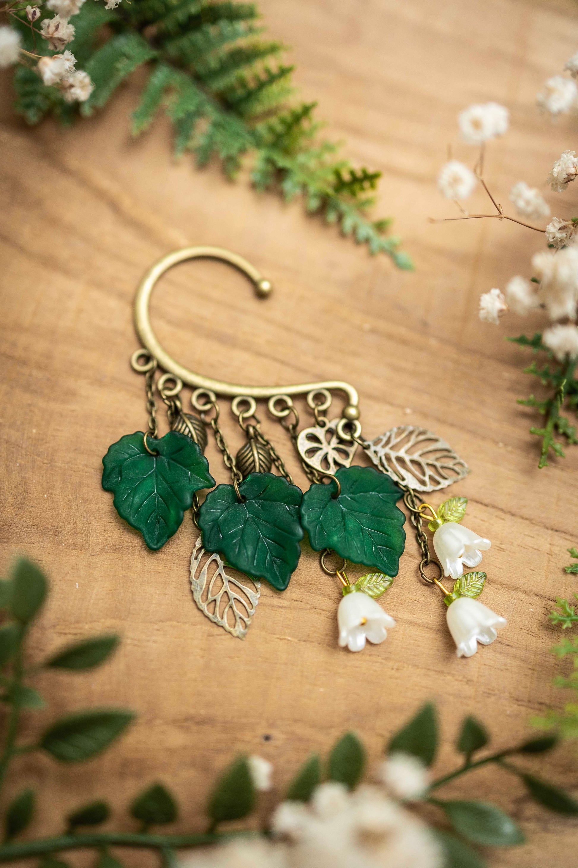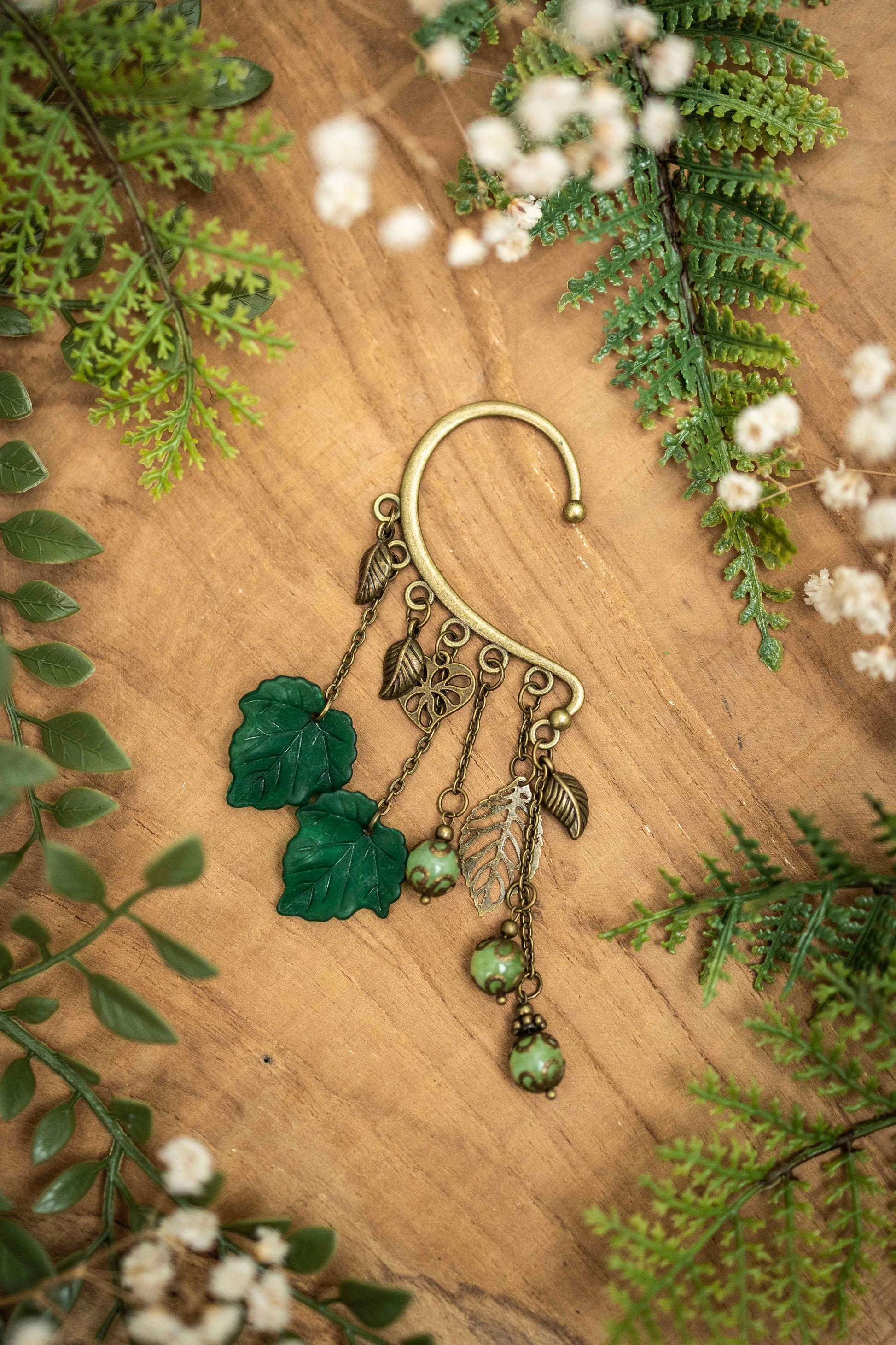 Diese kunstvollen Ohrhaken vereinen verspielte Blätter und zarte Perlen in warmen Grüntönen. Das antikgoldene Metall verleiht ihnen einen Hauch von Vintage-Eleganz, während das Design an elbische Wälder und magische Pfade erinnert. Ein Schmuckstück für alle, die den Zauber der Natur tragen möchten. 🌿✨