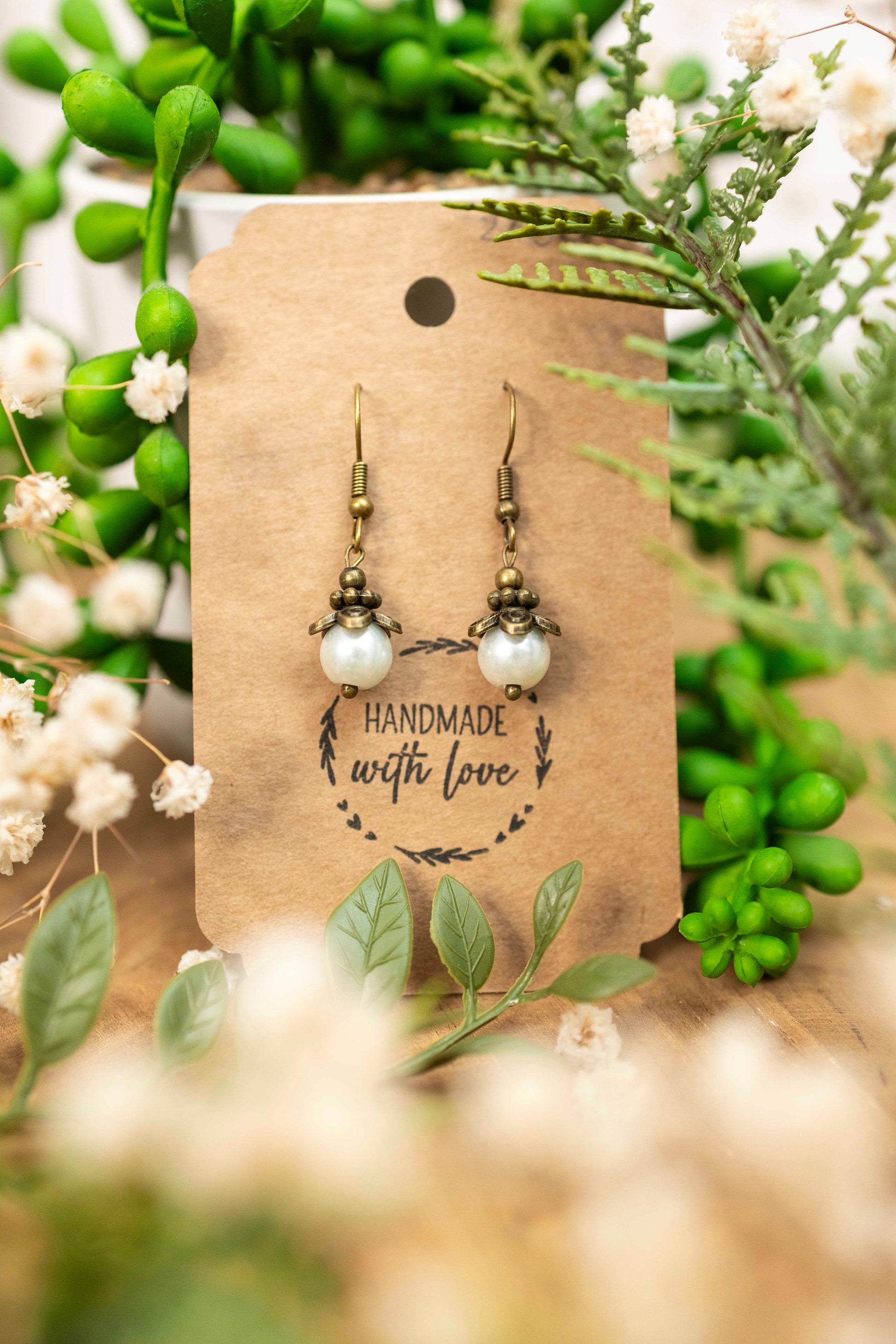 Zarte Perlen und antikes Messing vereinen sich zu einem eleganten Schmuckstück mit zeitlosem Charme. Diese handgefertigten Ohrringe passen perfekt zu Vintage-, Boho- und Fantasy-Outfits und bringen einen Hauch von Magie in jeden Look. ✨🤎