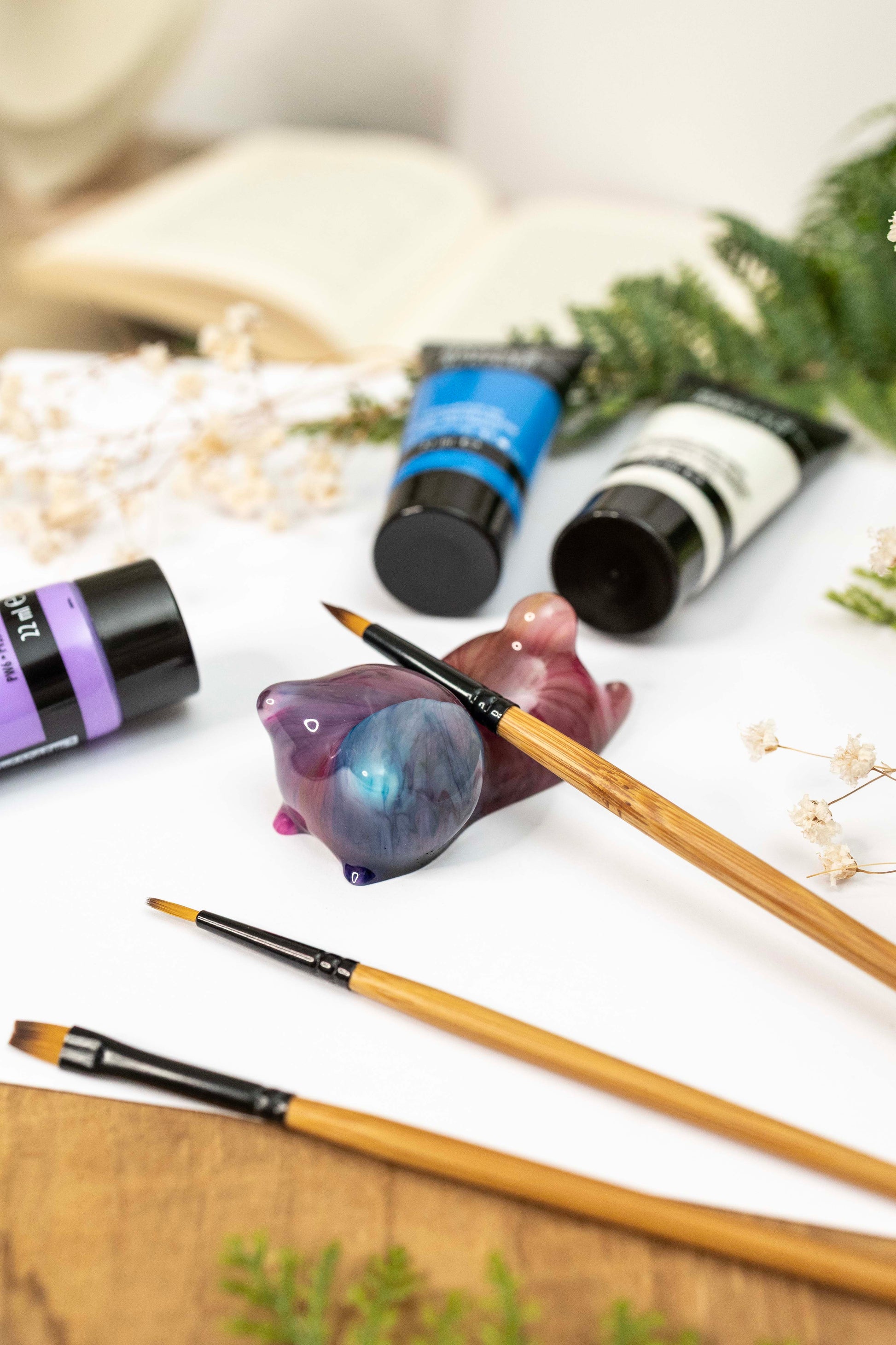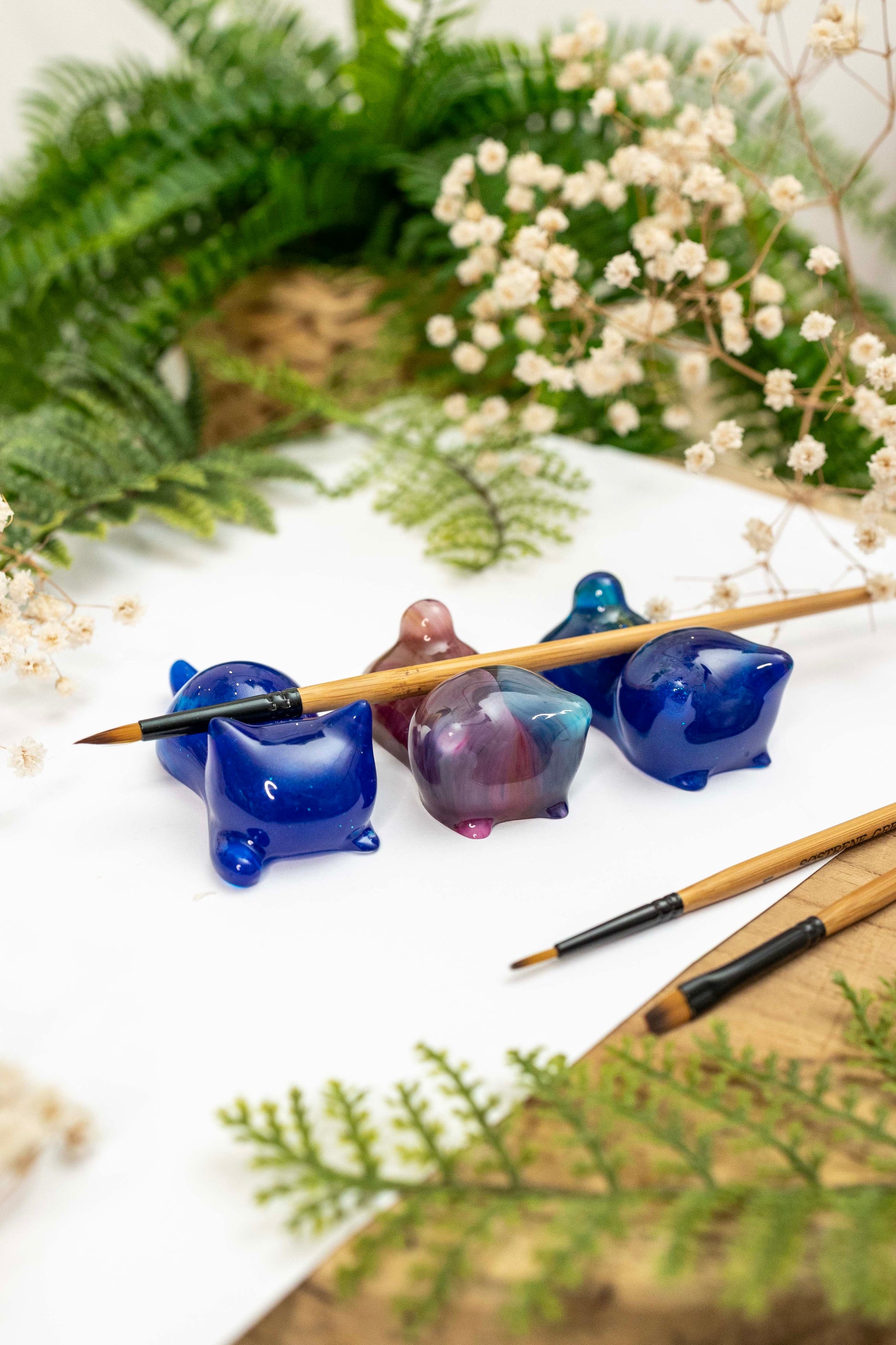 Diese liebevoll gefertigten Katzenfiguren aus Epoxidharz vereinen Funktionalität und Ästhetik. Ob als stilvoller Halter für Pinsel oder Essstäbchen oder einfach als kleine Tischdekoration – sie bringen einen Hauch von Ruhe und Eleganz in deinen Alltag. Jede Figur ist ein Unikat, mit sanften Farbverläufen und feinen Details, die sie zu einem besonderen Begleiter auf deinem Schreibtisch oder Esstisch machen. 🌸🎨🥢