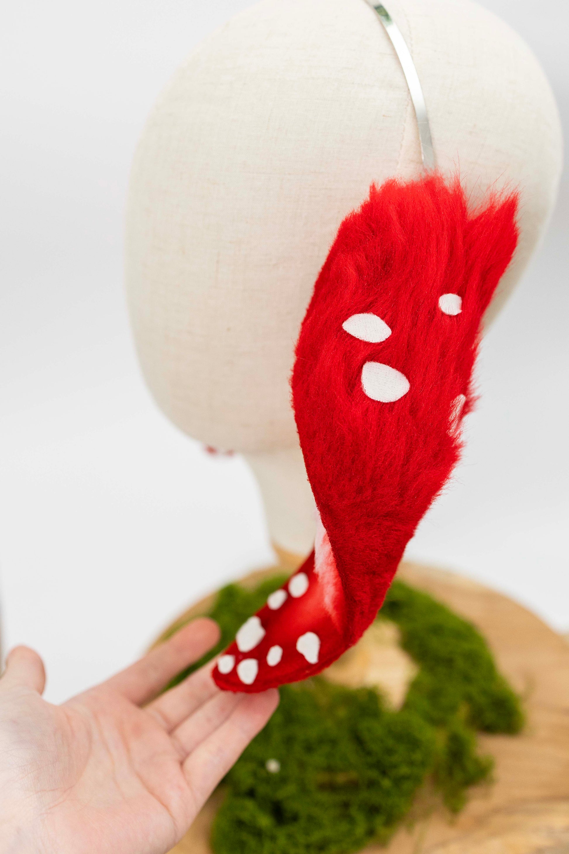 Weiche rot-weiße Hasenohren, liebevoll gefertigt und leicht verspielt im Look. Die Schlappform verleiht ihnen einen besonders niedlichen Ausdruck – perfekt für märchenhafte Looks, Cosplay oder saisonale Highlights.. 🌹